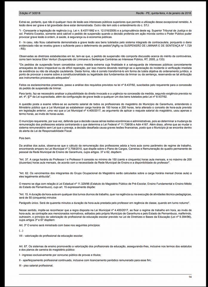 favorável aos Professores da Rede Municipal de Ensino de Garanhuns no sentido