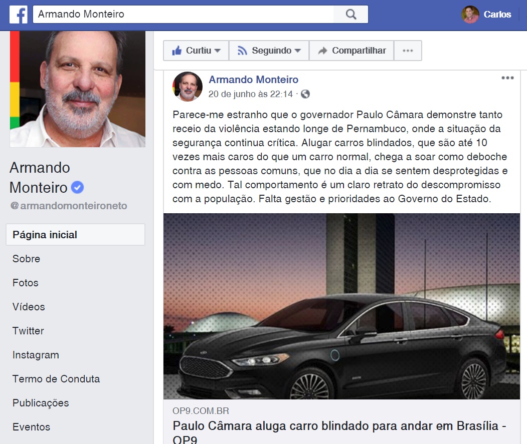 gestão e prioridades ao Governo do Estado”, publicou o senador Armando Monteiro