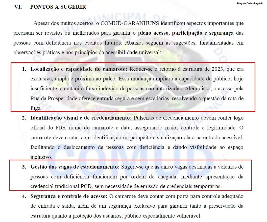 Ao apresentar sugestões para as próximas edições do FIG, o COMUD recomendou o retorno à estrutura utilizada em 2023; a melhoria na identificação visual; o reforço da segurança; a ampliação das vagas e a criação de um novo sistema digital de agendamento.