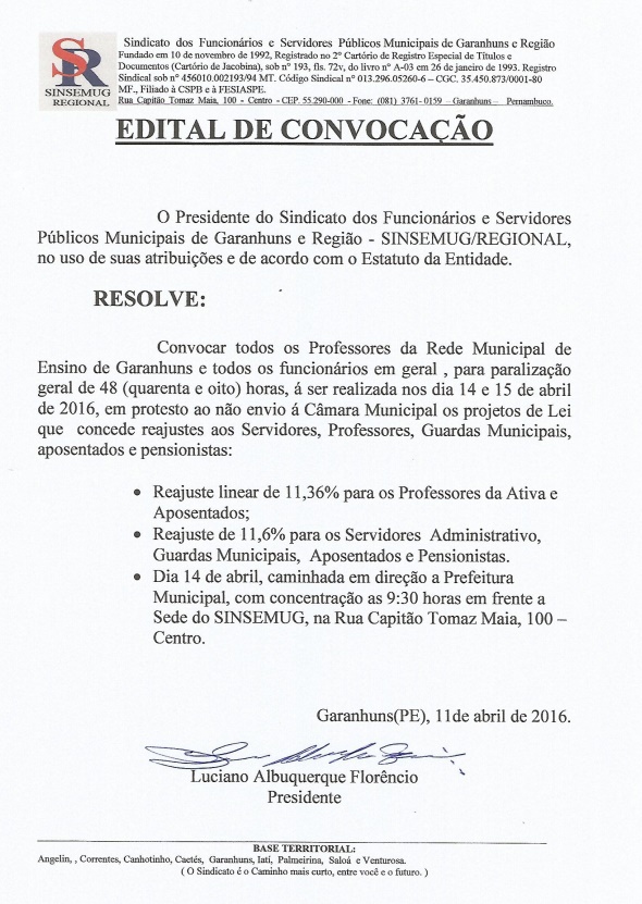 Sindicato dos Servidores Públicos Municipais de Garanhuns (SINSEMUG) e dos