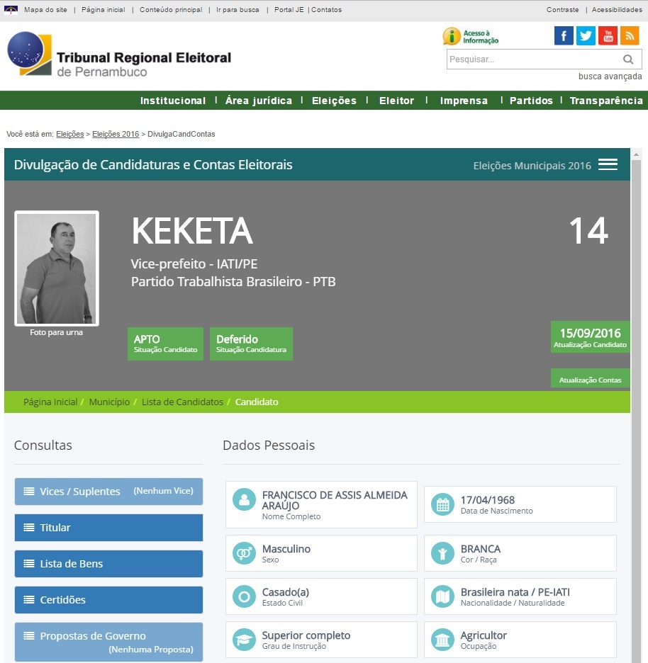 dessa reportagem, o site do Tribunal Regional Eleitoral de Pernambuco trazia a