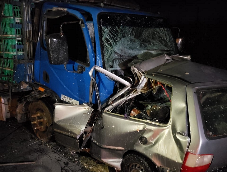 se envolveu no acidente ao colidir na traseira do Caminhão, que estava carregado