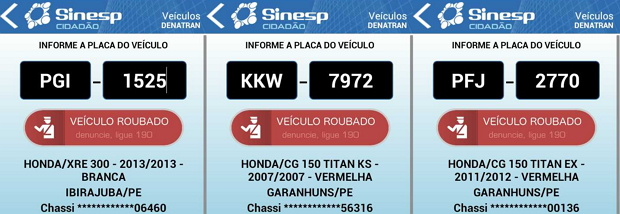 placa PGI-1525/PE. O roubo aconteceu