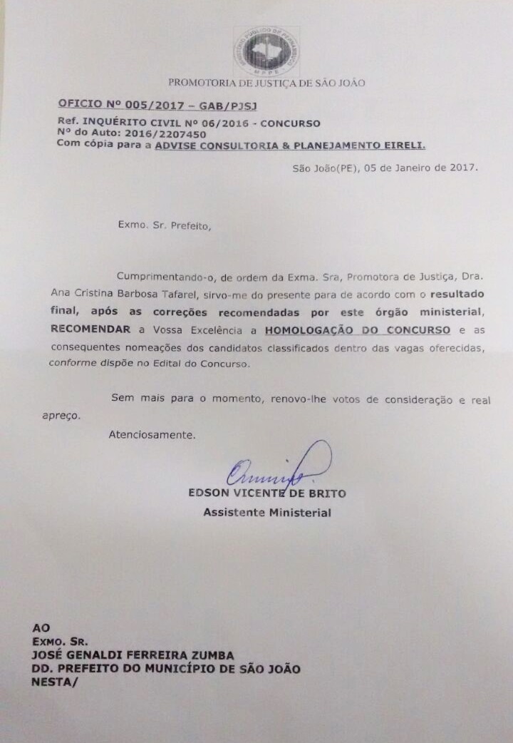 Justiça de São João, recomendou ao Prefeito daquele Município, Genaldi Zumba