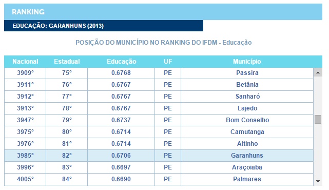 3985º. Em Pernambuco, Garanhuns é a 82º dentre os 185 Municípios e num cenário voltado
