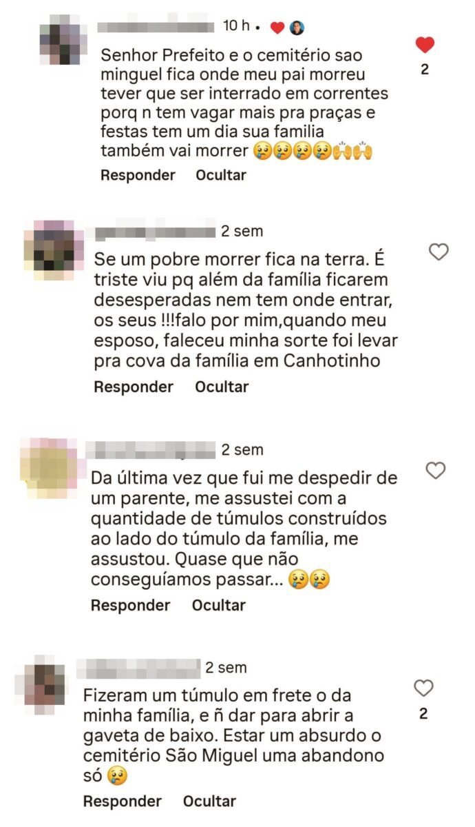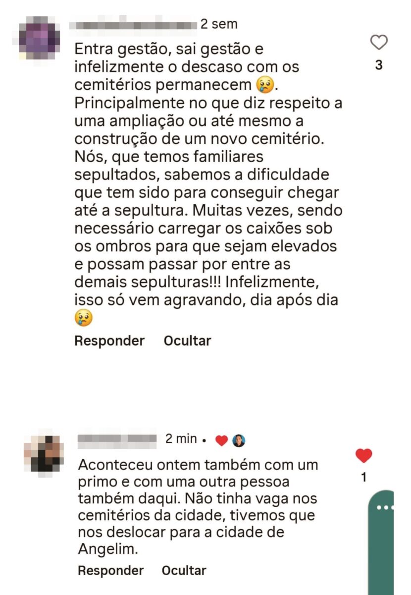 REPERCUSSÃO – O caso ganhou repercussão após série de reportagens publicadas pelo Blog do Carlos Eugênio, que, desde 2018, vem noticiando a falta de espaço nos cemitérios públicos e a ausência de ações efetivas por parte da Prefeitura para sanar o problema no sistema funerário do Município. O programa O Arraiá do Gláucio Costa, apresentado por Gláucio Costa, na rádio Marano FM, também destaca tal necessidade ao longo dos últimos anos.