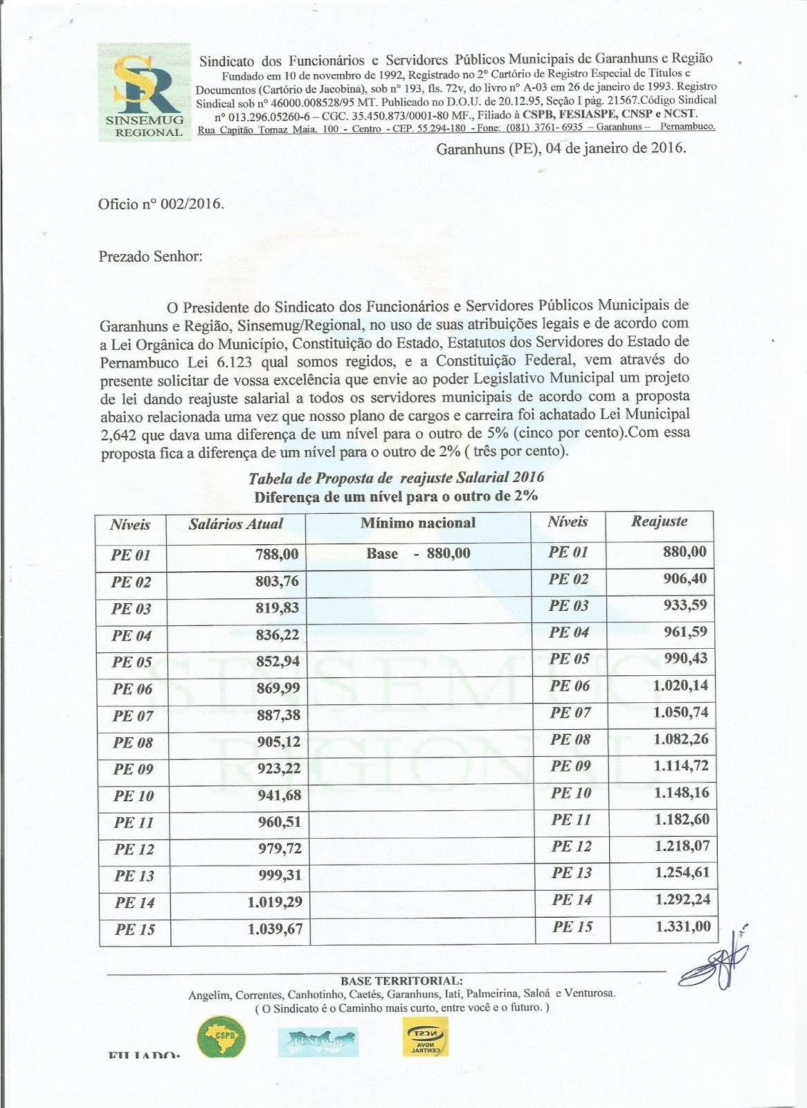 Câmara Municipal sugerindo o reajuste. Vale salientar que o percentual do
