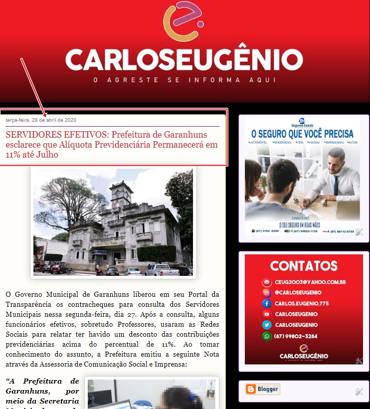 através das redes sociais e registrou em Nota publicada no Blog do Carlos Eugênio