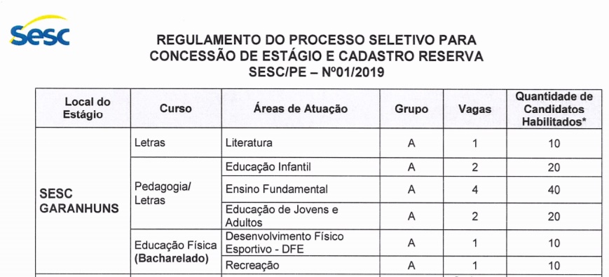 devem se inscrever pelo site: sescpe.org.br. As vagas são para os municípios do