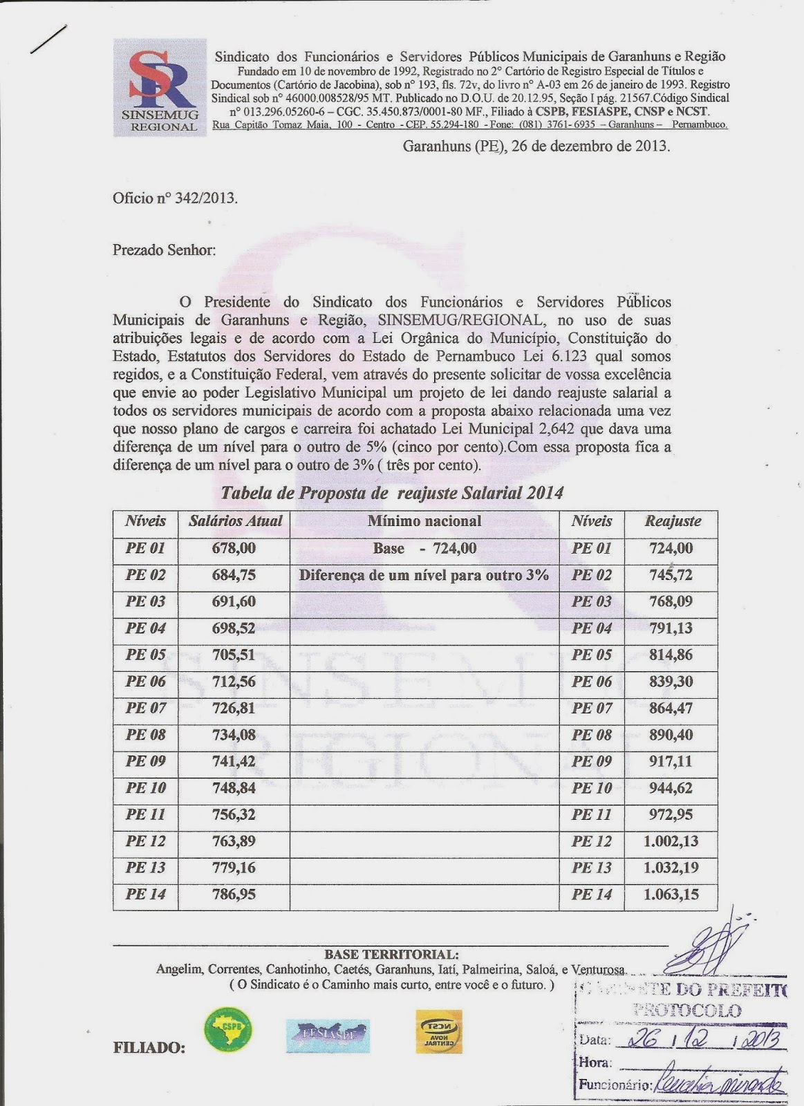 Prefeito duas propostas de reajuste salarial para o ano de 2014, referentes ao