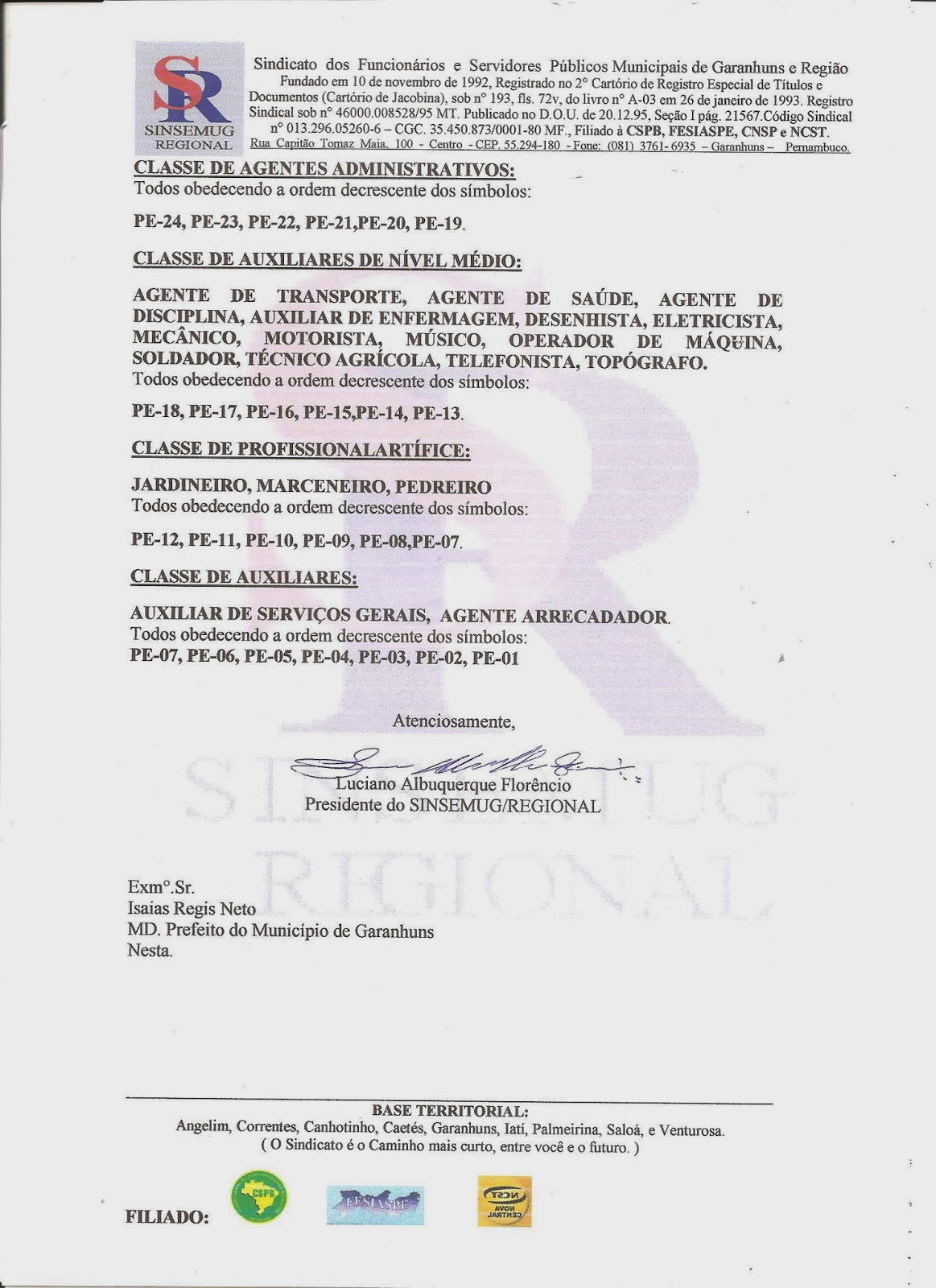 e confira todos os percentuais pleiteados pelo Sindicato junto ao Prefeito de