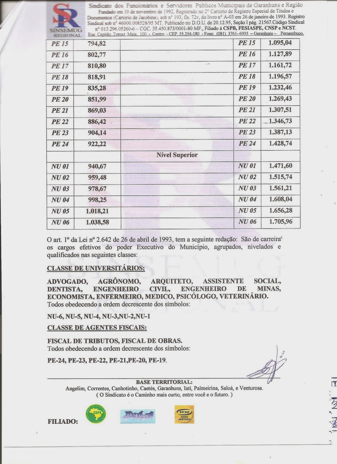 reajuste que vão possibilitar o recebimento de salários que variam entre o novo