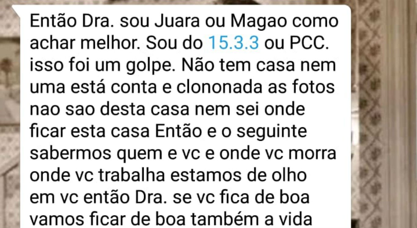 suposto integrante da facção criminosa também ameaçou a Vítima. Caso procurasse