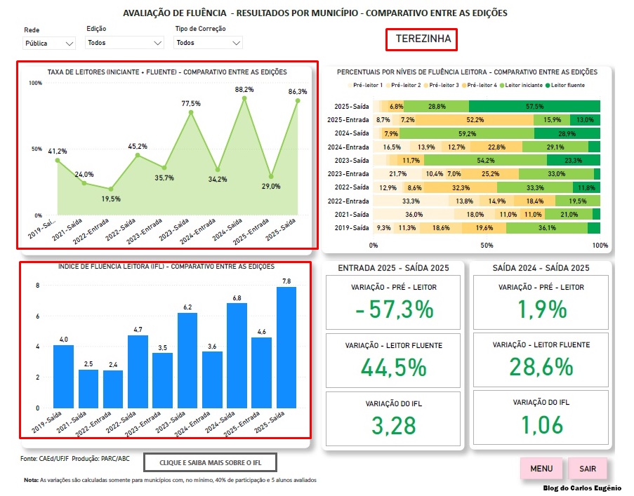 Segundo a Prefeitura de Terezinha, o desempenho é resultado direto do trabalho articulado entre professores, equipes pedagógicas, gestão escolar e famílias, aliado ao investimento contínuo em formação docente, acompanhamento pedagógico e políticas públicas educacionais. “A fluência leitora é um dos pilares centrais da aprendizagem e tem sido prioridade no planejamento educacional do Município”, avaliou o secretário de Educação, Hélio Inácio. (@blogcarloseugenio)