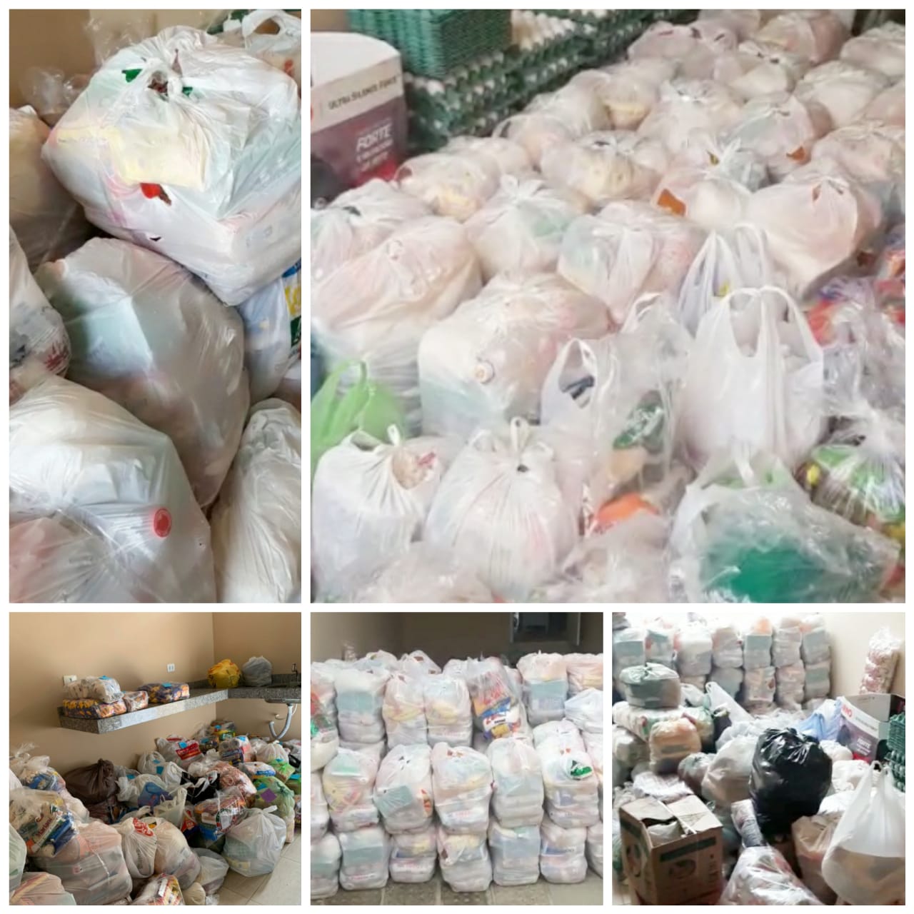Foram arrecadados cerca de 3,5 toneladas de alimentos; 400 máscaras; 300 frascos