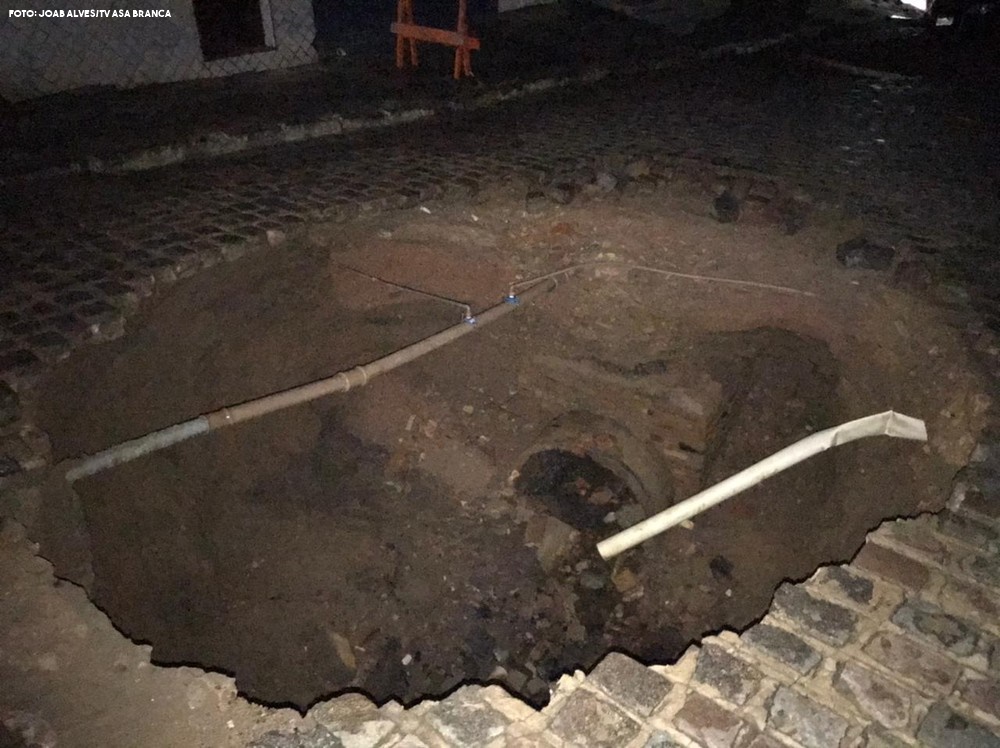 em um buraco formado durante as fortes chuvas que foram registradas na noite de