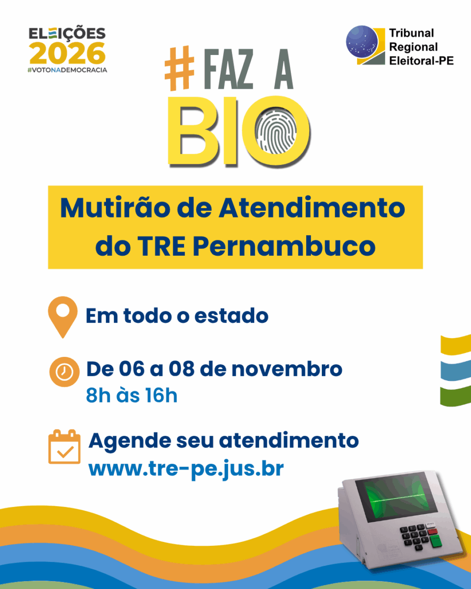 Os interessados devem agendar o atendimento pelo site do TRE-PE (clique AQUI), acessando o Autoatendimento Eleitoral. No portal, também é possível verificar se a biometria já está cadastrada, clicando em “Título Eleitoral” e consultando a situação do eleitor.