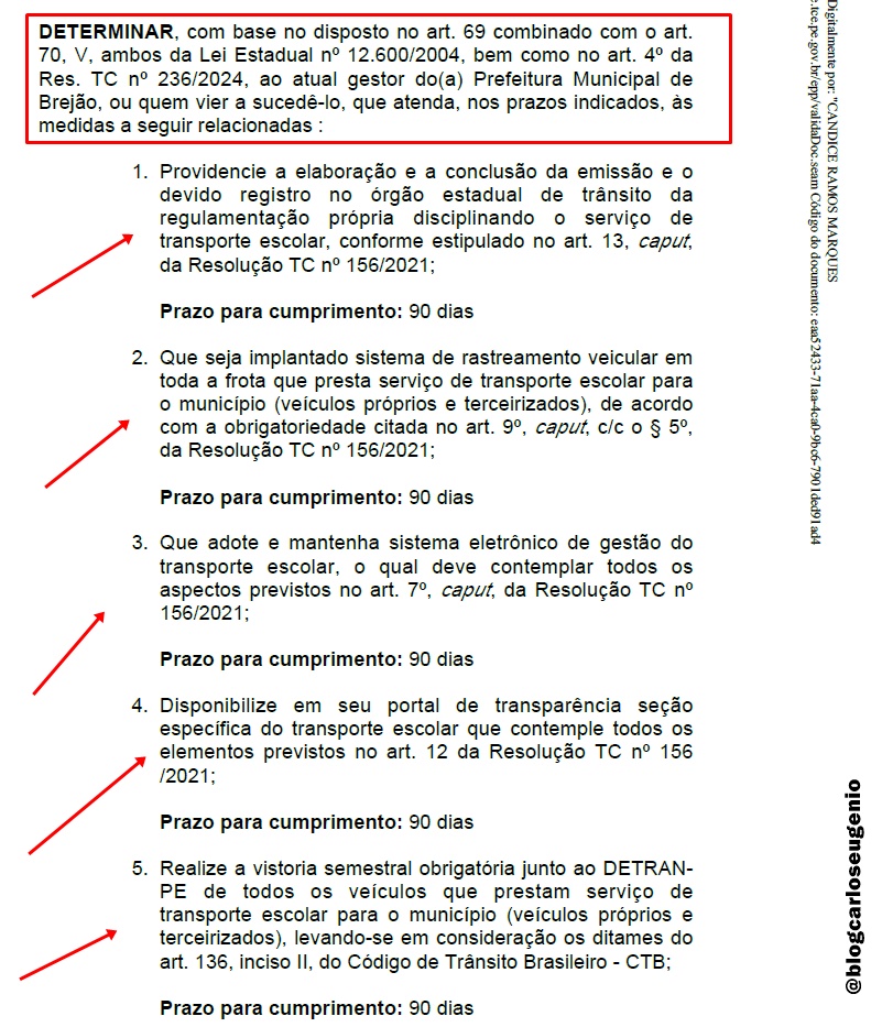 Além da multa, o Tribunal determinou que a Prefeitura de Brejão adote medidas corretivas no prazo de 90 dias, incluindo regularização da frota, implantação de sistemas de controle e adequação das normas e da transparência. Não há informações se as determinações foram cumpridas, uma vez que o prazo expirou em fevereiro passado.