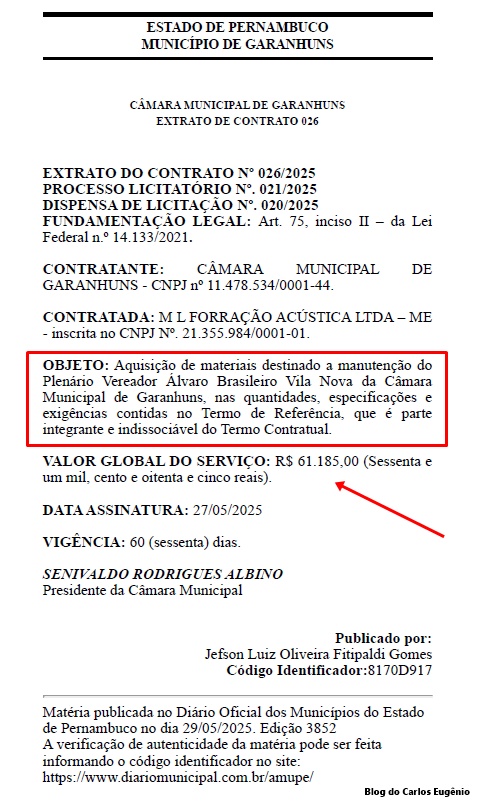 Casos emblemáticos, como os Contratos nº 025/2025 e 026/2025 (detalhes acima), firmados na mesma data com a mesma Empresa, separando artificialmente a aquisição de materiais da respectiva instalação, reforçaram a suspeita de fragmentação, segundo o TCE-PE.