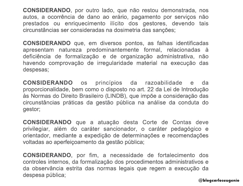 O Tribunal também destacou que a concentração de funções, como liquidação, fiscalização e pagamento de despesas, nas mãos de um mesmo Agente Público fere o princípio da segregação de funções e compromete a transparência da Gestão.