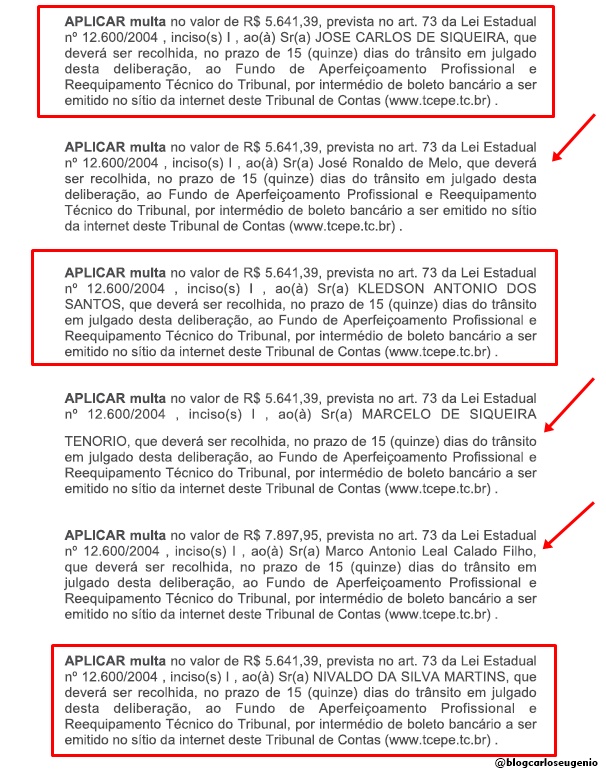 O Processo TCE-PE nº 25101075-2 foi analisado durante a 11ª Sessão Ordinária Presencial da Primeira Câmara, realizada no último dia 14. A Prefeitura de Caetés não comentou as sanções impostas pelo TCE-PE. Saiba mais baixando o julgamento AQUI. (@blogcarloseugenio)