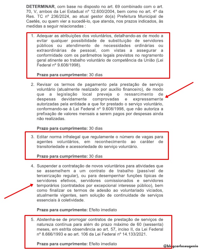 Além das sanções, o Tribunal determinou a adoção de medidas imediatas, como a suspensão de contratações irregulares de voluntários e o respeito ao limite máximo de 60 meses para contratos contínuos. Também foi fixado prazo de 30 dias para ajustes normativos e administrativos.