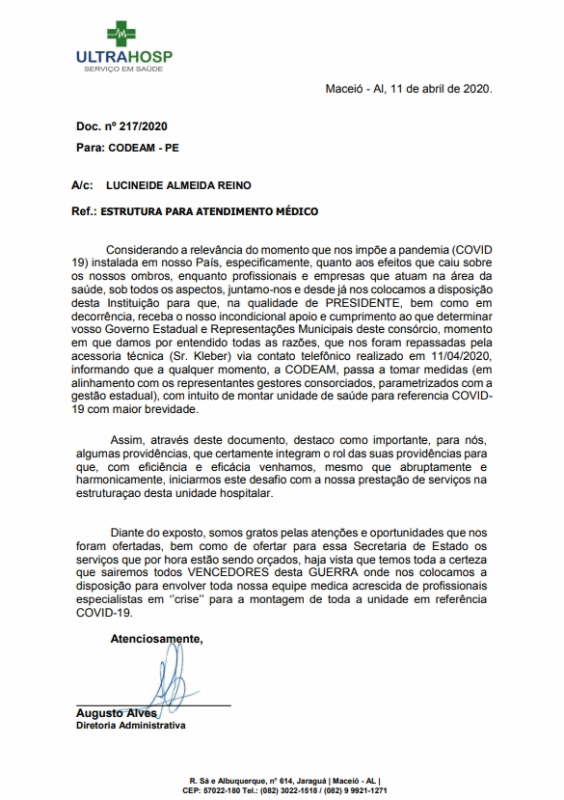 implantação de um Hospital de Campanha aqui em Garanhuns, com os custos sendo compartilhados