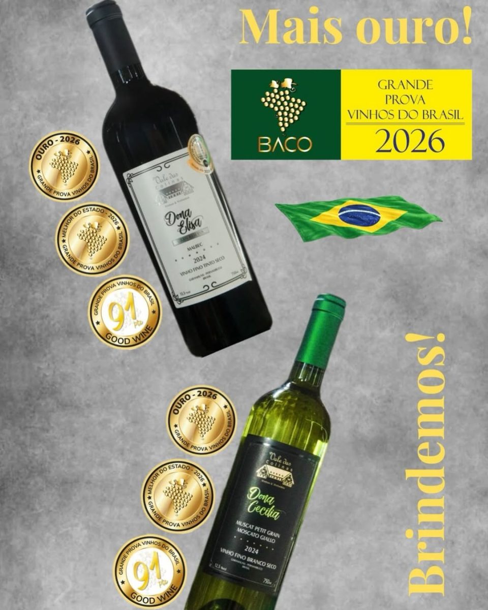 Outras premiações recentes incluem medalhas em concursos nacionais e internacionais, como a título conquistado com o rótulo Cabana do Vale Safra 2023 no Catad’Or World Wine Awards, no Chile (relembre AQUI). Já o Dona Cecília conquistou a Medalha de Ouro e o título de Melhor Vinho Moscato do Brasil (relembre AQUI), enquanto o Dona Elisa (Malbec) também foi premiado com ouro em competições nacionais (relembre AQUI).