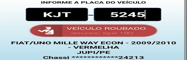 tomaram de assalto seu veículo Fiat Uno, de cor cinza, e placa KKC-0834/PE. O assalto aconteceu por volta das 22h da
