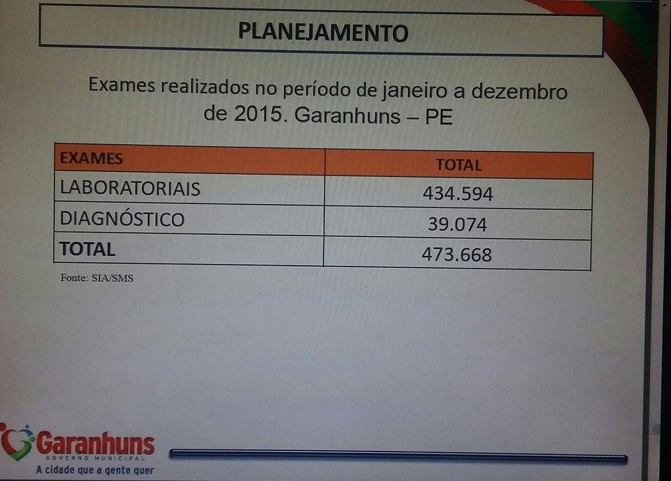 que no ano de 2015 a Prefeitura de Garanhuns liberou exatos 473.668 exames, ou