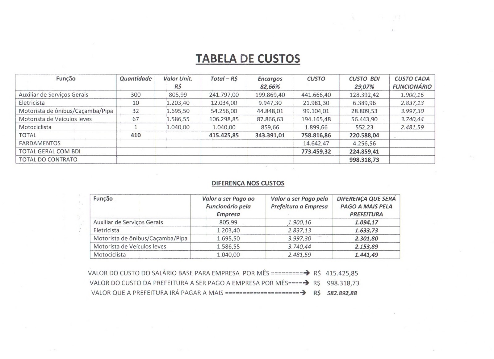 e “irreais”, quanto à contratação de uma Empresa de Prestação de Serviços