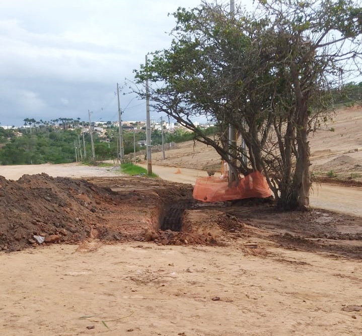 A Empresa iniciou escavando um dreno provisório para facilitar o