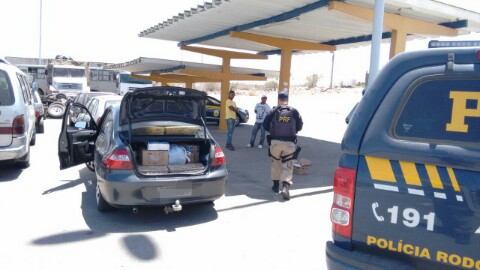 quando deram ordem de parada ao veículo repleto de caixas no porta-malas e no