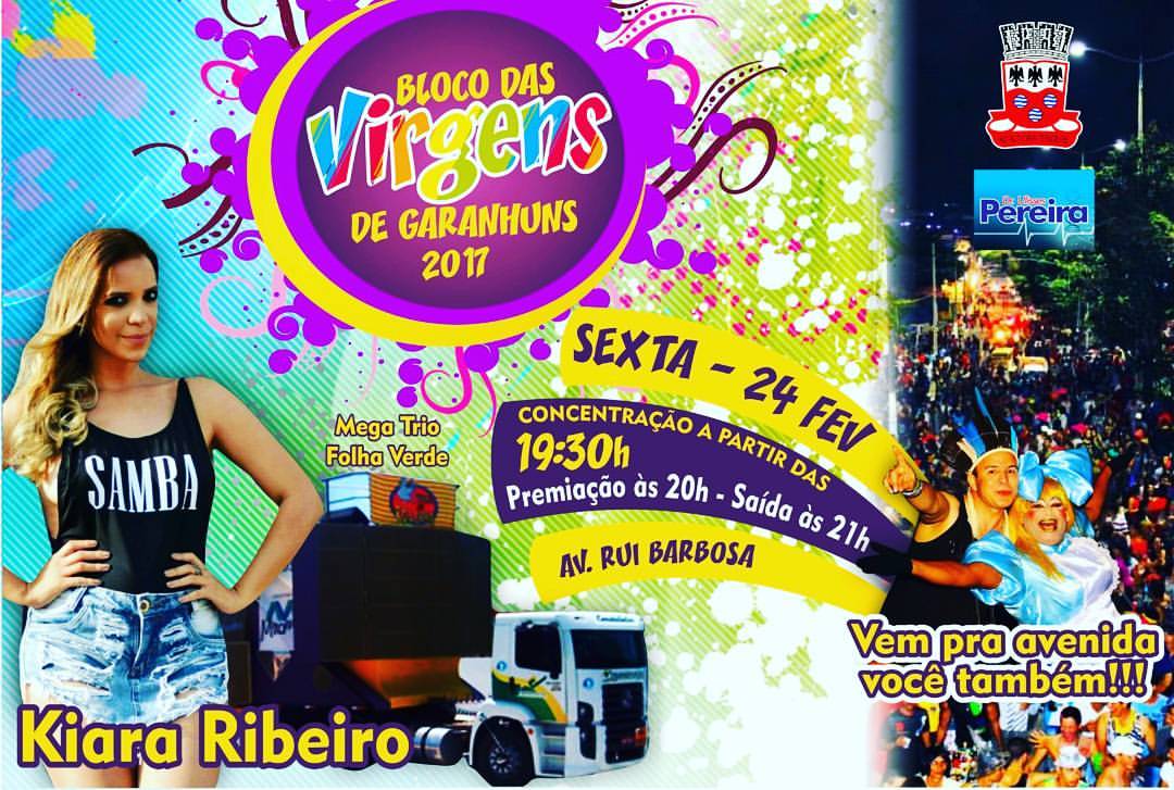 partir das 19h30min defronte a Lojas Americanas, na Avenida Rui Barbosa. A premiação das Virgens mais criativas acontece a partir das 20h e a saída do Bloco está prevista para as 21h. O