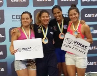 conquistou a terceira colocação na categoria até 69 kg e Aline em quinto lugar